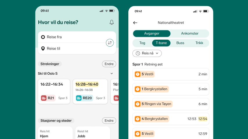 - Lagre favorittstrekningene dine for å kunne sjekke avganger og siste trafikkstatus på sekunder.
